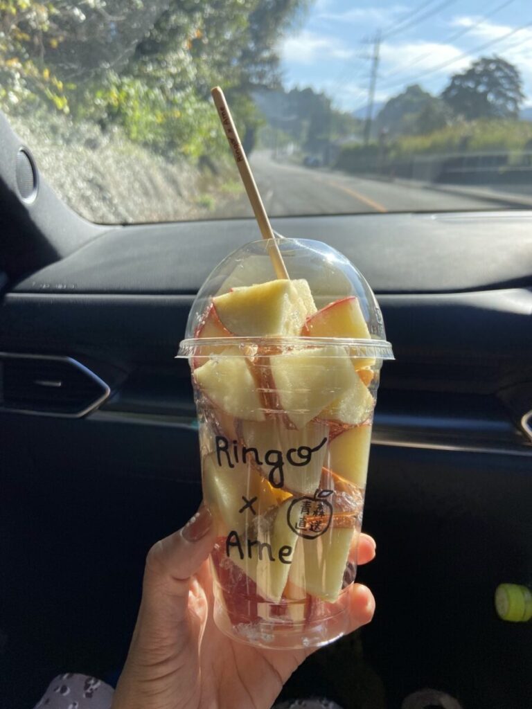 ここのりんご飴は青森のりんご農家さんから直接仕入れているそうで、中のりんごが驚くほどシャッキシャキで美味。